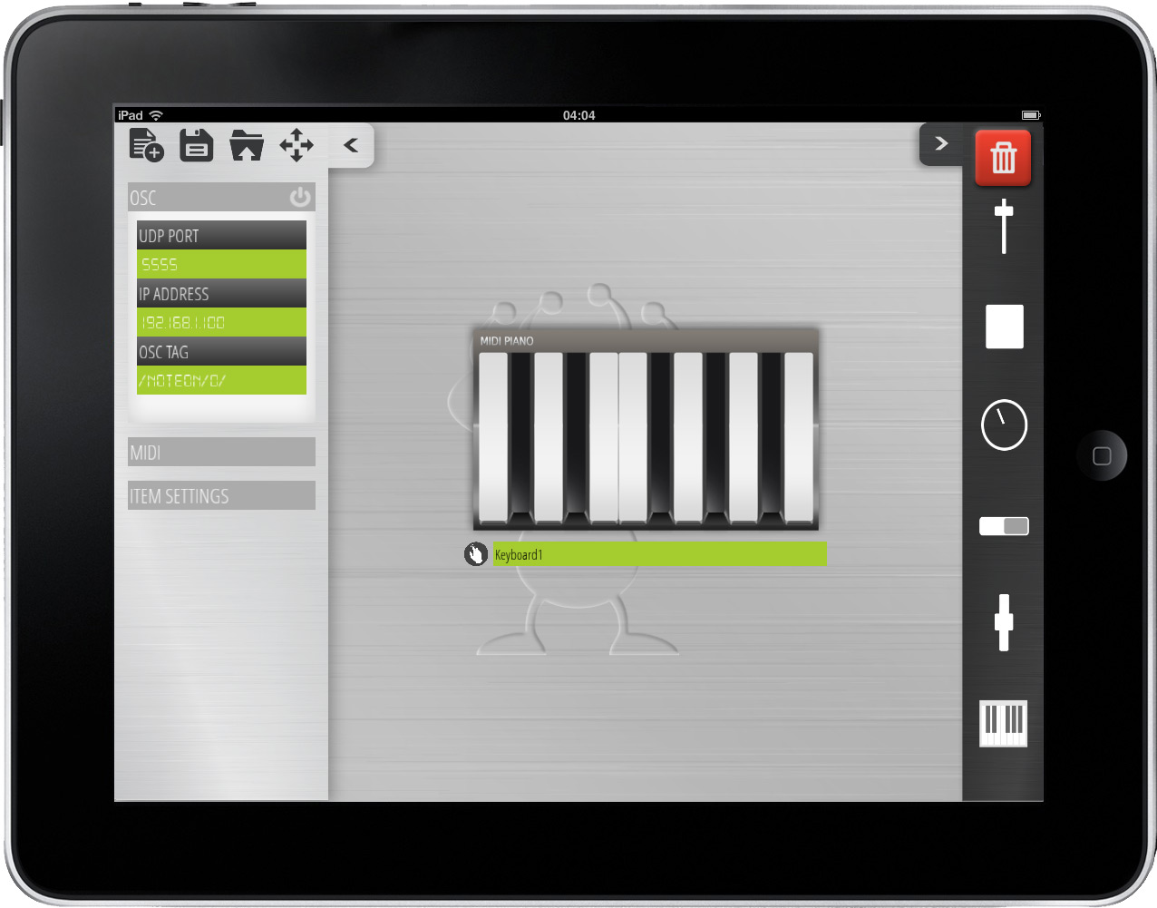 A wireless connection can be used to control a virtual instrument using the Open Sound Control Protocol.